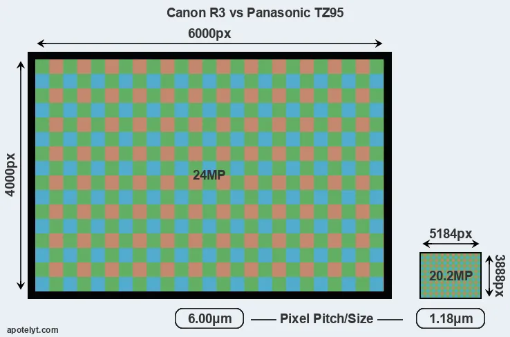 | Sensor Specs | Canon R3 | Panasonic TZ95 |