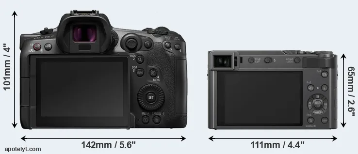 The above size and weight comparisons are to some extent incomplete and possibly misleading, as the TZ200 has a lens built in, whereas the R5 C is an interchangeable lens camera that requires a separate lens. Attaching the latter will add extra weight and bulk to the setup.