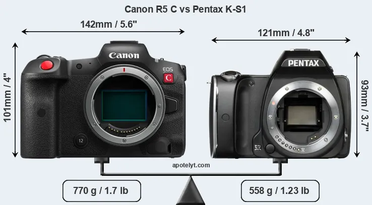 | Body Specs | Canon R5 C | Pentax K-S1 |