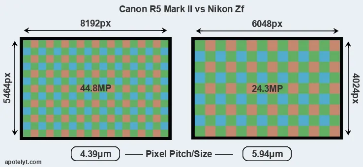 | Sensor Specs | Canon R5 Mark II | Nikon Zf |