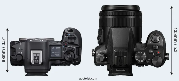 The above size and weight comparisons are to some extent incomplete and possibly misleading, as the FZ2500 has a lens built in, whereas the R5 Mark II is an interchangeable lens camera that requires a separate lens. Attaching the latter will add extra weight and bulk to the setup.