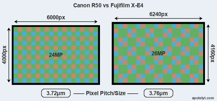 | Sensor Specs | Canon R50 | Fujifilm X-E4 |
