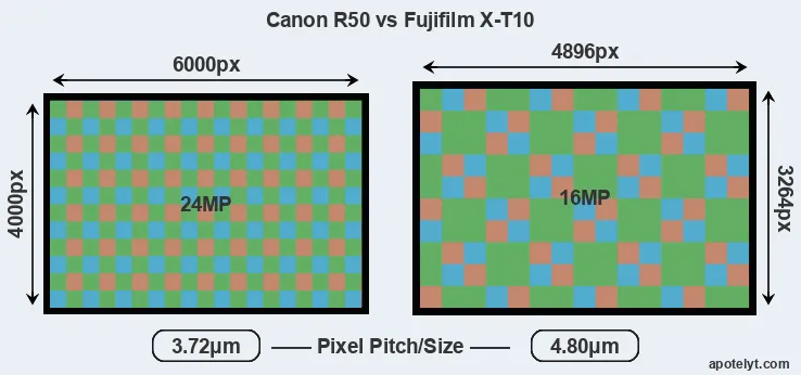 | Sensor Specs | Canon R50 | Fujifilm X-T10 |