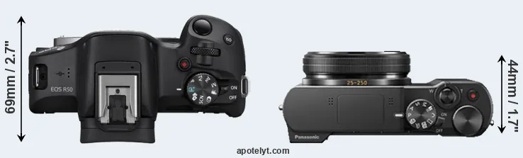 | Body Specs | Canon R50 | Panasonic TZ100 |