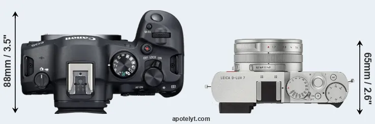 The above size and weight comparisons are to some extent incomplete and possibly misleading, as the D-LUX 7 has a lens built in, whereas the R6 Mark II is an interchangeable lens camera that requires a separate lens. Attaching the latter will add extra weight and bulk to the setup.