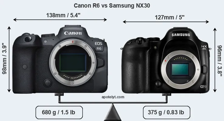Specifications: Canon R6 vs Samsung NX30