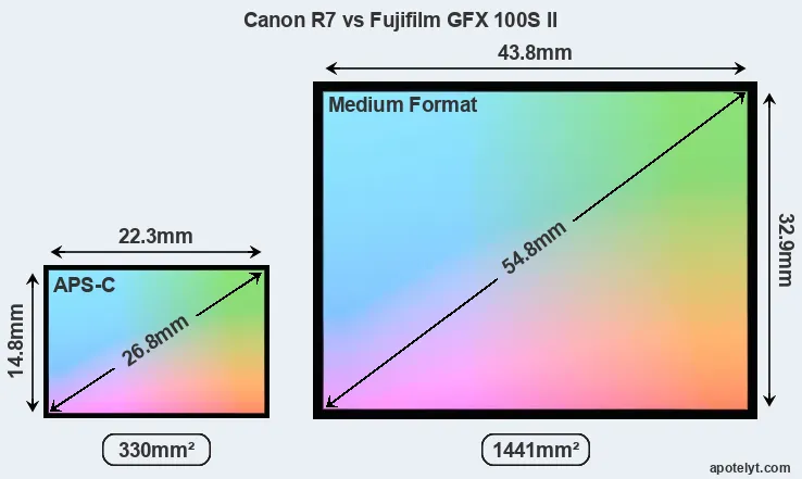 | Sensor Specs | Canon R7 | Fujifilm GFX 100S II |