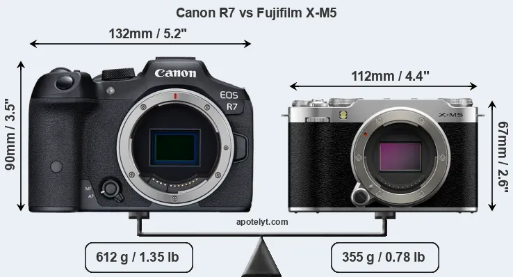 Specifications: Canon R7 vs Fujifilm X-M5