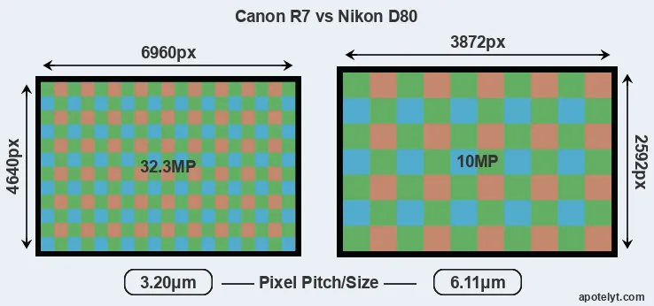 | Sensor Specs | Canon R7 | Nikon D80 |