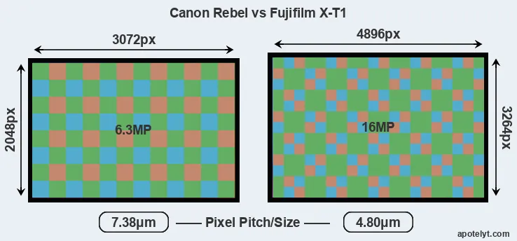 | Sensor Specs | Canon Rebel | Fujifilm X-T1 |