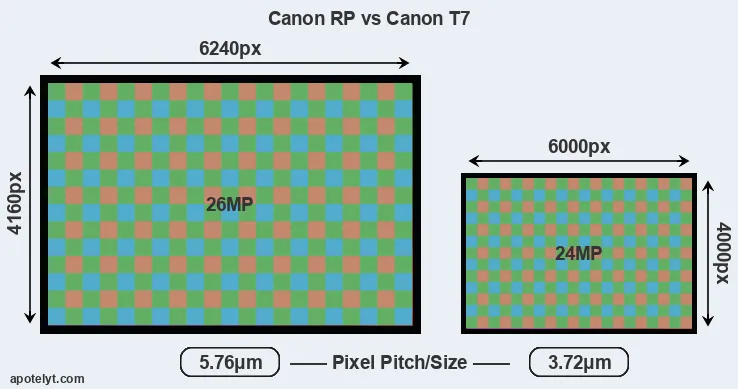 | Sensor Specs | Canon RP | Canon T7 |