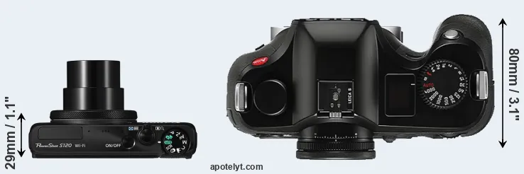 Going beyond this snapshot of core features and characteristics, what are the differences between the Canon PowerShot S120 and the Leica S (Typ 006)? Which one should you buy? Read on to find out how these two cameras compare with respect to their body size, their imaging sensors, their shooting features, their input-output connections, and their reception by expert reviewers.