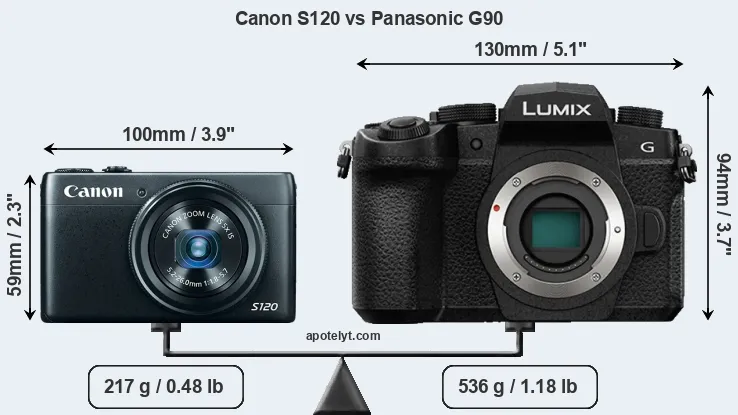 Going beyond this snapshot of core features and characteristics, what are the differences between the Canon PowerShot S120 and the Panasonic Lumix DC-G90? Which one should you buy? Read on to find out how these two cameras compare with respect to their body size, their imaging sensors, their shooting features, their input-output connections, and their reception by expert reviewers.