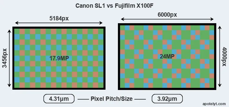 | Sensor Specs | Canon SL1 | Fujifilm X100F |