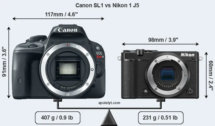 Size Canon SL1 vs Nikon 1 J5