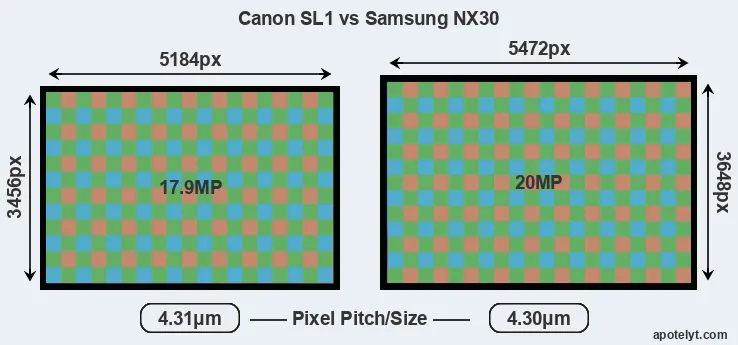 | Sensor Specs | Canon SL1 | Samsung NX30 |