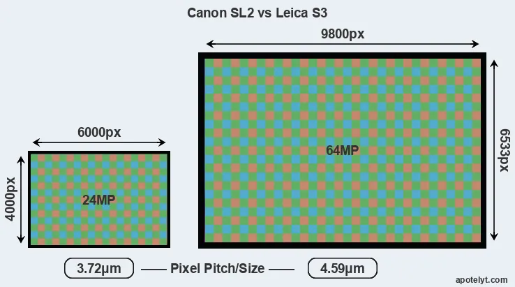 | Sensor Specs | Canon SL2 | Leica S3 |