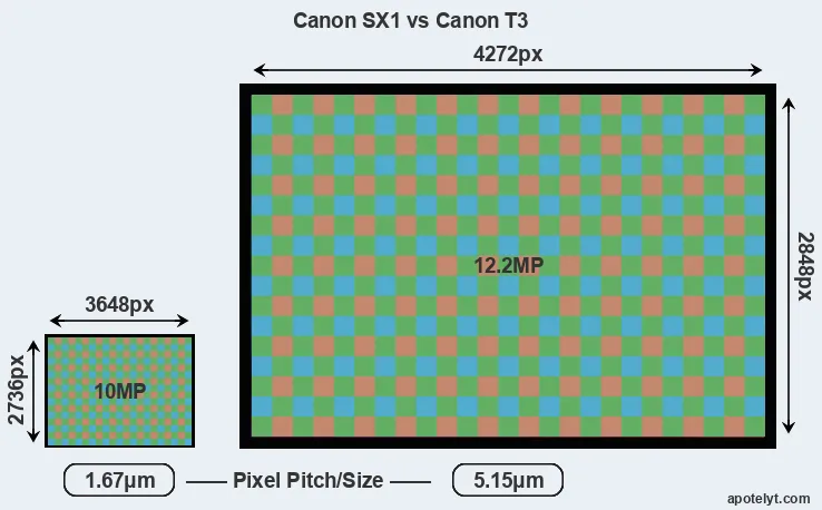 | Sensor Specs | Canon SX1 | Canon T3 |