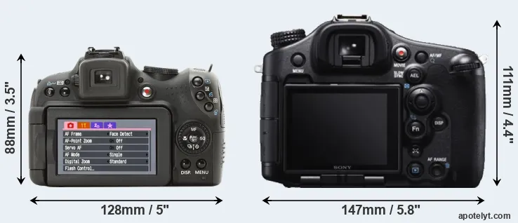 | 14. | Sony A77 | 143 mm | 104 mm | 81 mm | 732 g | 470 | Y | Aug 2011 | US$ 1 399 | ebay.com | |