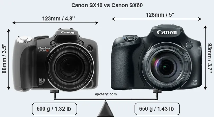 | Body Specs | Canon SX10 | Canon SX60 |