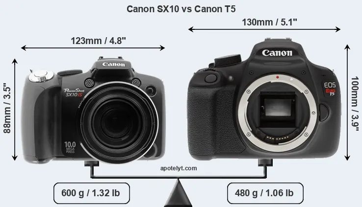 | Body Specs | Canon SX10 | Canon T5 |