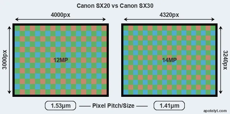| Sensor Specs | Canon SX20 | Canon SX30 |