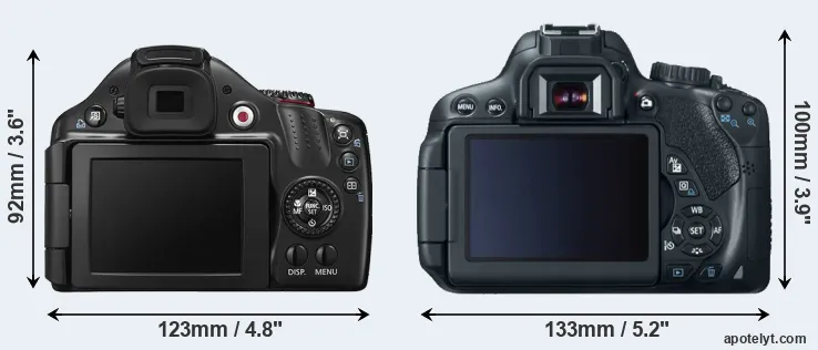 The Canon PowerShot SX40 HS and the Canon EOS Rebel T4i (labelled Canon 650D in some countries) are two digital cameras that were officially introduced, respectively, in September 2011 and June 2012. The SX40 is a fixed lens compact, while the T4i is a DSLR. The cameras are based on a 1/2.3-inch (SX40) and an APS-C (T4i) sensor. The SX40 has a resolution of 12 megapixels, whereas the T4i provides 17.9 MP.