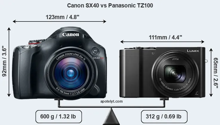 Size Canon SX40 vs Panasonic TZ100