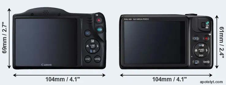 If the front view area (width x height) of the cameras is taken as an aggregate measure of their size, the Canon SX600 is notably smaller (12 percent) than the Canon SX410. Moreover, the SX600 is substantially lighter (42 percent) than the SX410. In this context, it is worth noting that neither the SX410 nor the SX600 are weather-sealed.