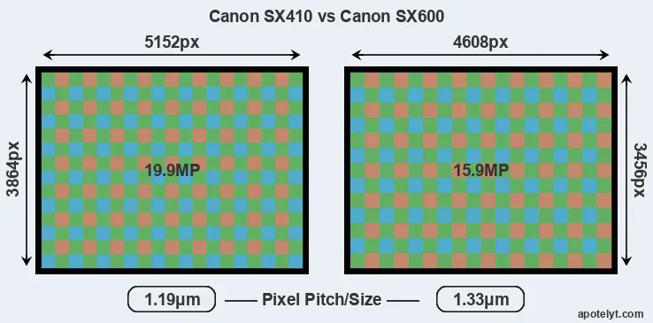 | Sensor Specs | Canon SX410 | Canon SX600 |