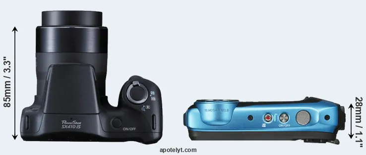| Body Specs | Canon SX410 | Fujifilm XP130 |