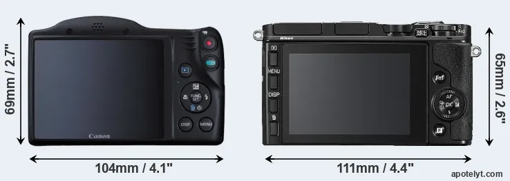 | Body Specs | Canon SX410 | Nikon 1 V3 |