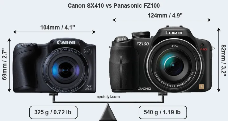 | Body Specs | Canon SX410 | Panasonic FZ100 |