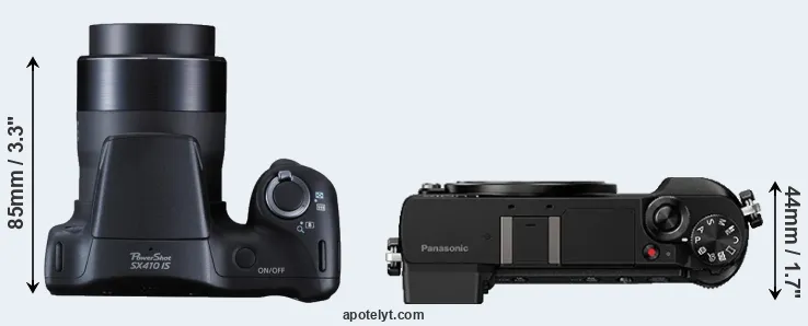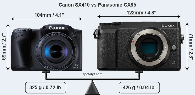 | Body Specs | Canon SX410 | Panasonic GX85 |