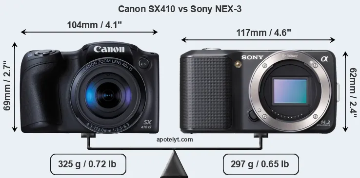 | Body Specs | Canon SX410 | Sony NEX-3 |
