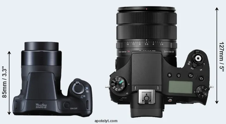 Going beyond this snapshot of core features and characteristics, what are the differences between the Canon PowerShot SX410 IS and the Sony Cyber-shot DSC-RX10 III? Which one should you buy? Read on to find out how these two cameras compare with respect to their body size, their imaging sensors, their shooting features, their input-output connections, and their reception by expert reviewers.