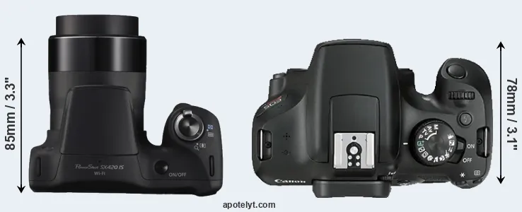 The Canon PowerShot SX420 IS and the Canon EOS Rebel T6 (labelled Canon 1300D in some countries) are two digital cameras that were officially introduced, respectively, in January 2016 and March 2016. The SX420 is a fixed lens compact, while the T6 is a DSLR. The cameras are based on a 1/2.3-inch (SX420) and an APS-C (T6) sensor. The SX420 has a resolution of 19.9 megapixels, whereas the T6 provides 17.9 MP.