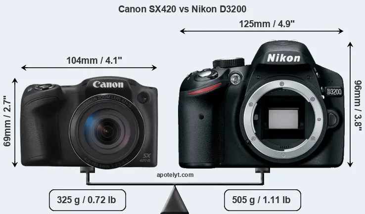 | Body Specs | Canon SX420 | Nikon D3200 |