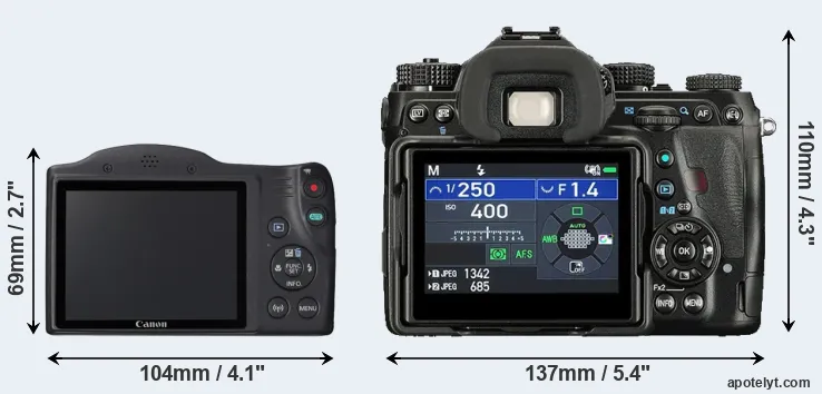 | Body Specs | Canon SX420 | Pentax K-1 II |