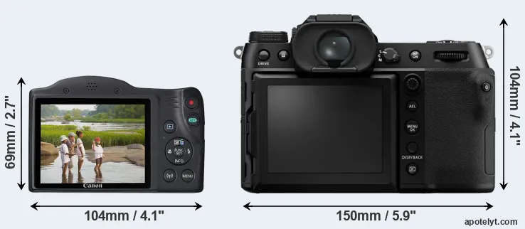 | Body Specs | Canon SX430 | Fujifilm GFX 100S |