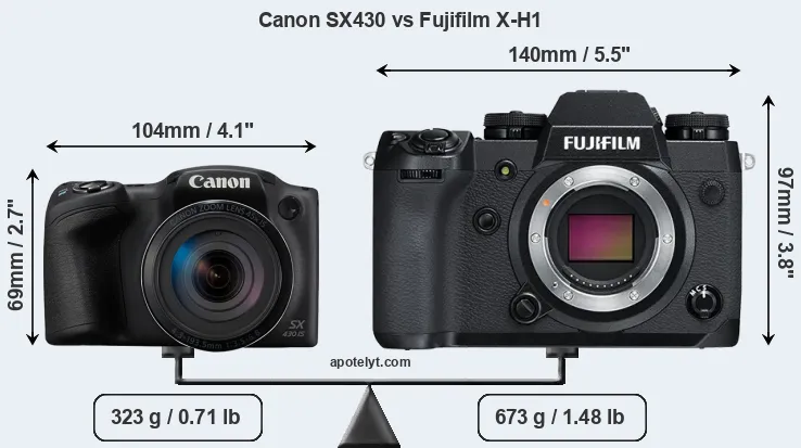 | Body Specs | Canon SX430 | Fujifilm X-H1 |