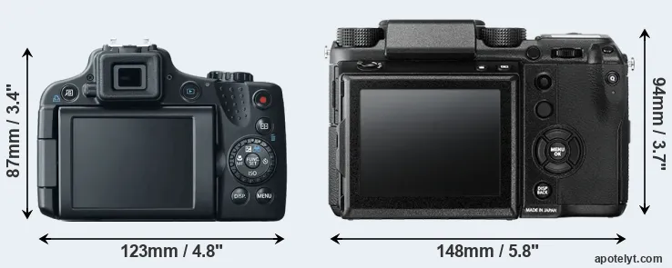 | Body Specs | Canon SX50 | Fujifilm GFX 50S |