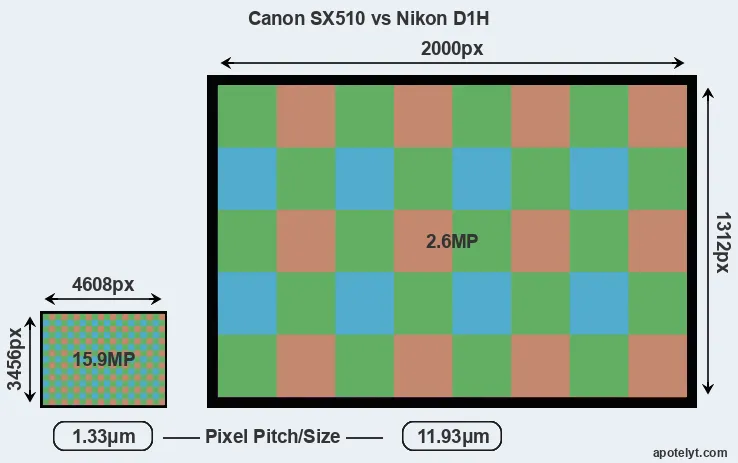 | Sensor Specs | Canon SX510 | Nikon D1H |
