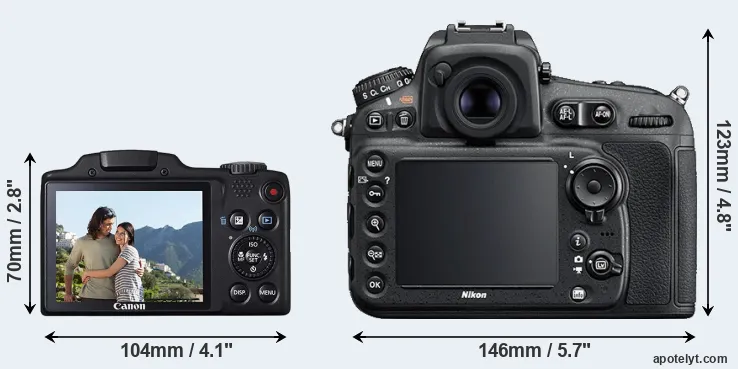 | Body Specs | Canon SX510 | Nikon D810 |