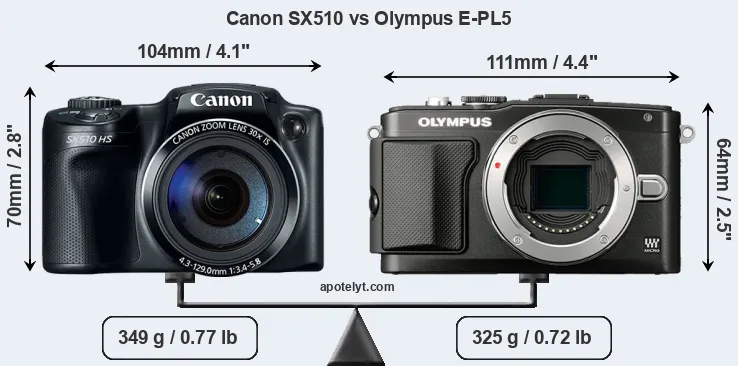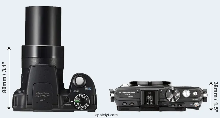 The above size and weight comparisons are to some extent incomplete and possibly misleading, as the SX510 has a lens built in, whereas the E-PL5 is an interchangeable lens camera that requires a separate lens. Attaching the latter will add extra weight and bulk to the setup. You can compare the optics available for the E-PL5 and their specifications in the Micro Four Thirds Lens Catalog.