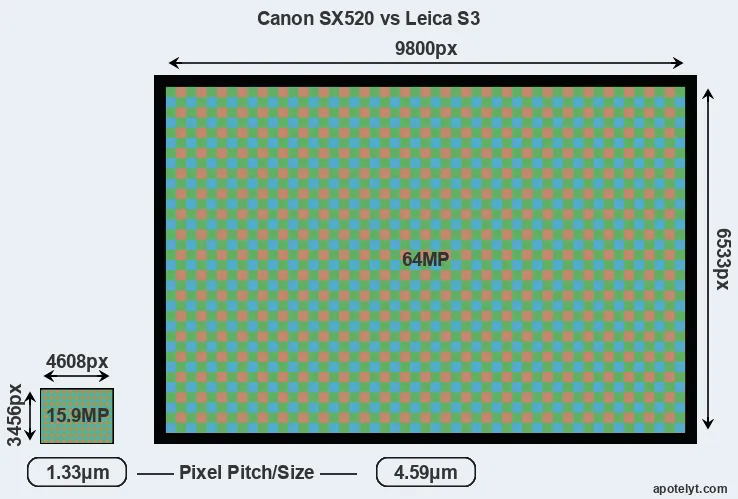 | Sensor Specs | Canon SX520 | Leica S3 |