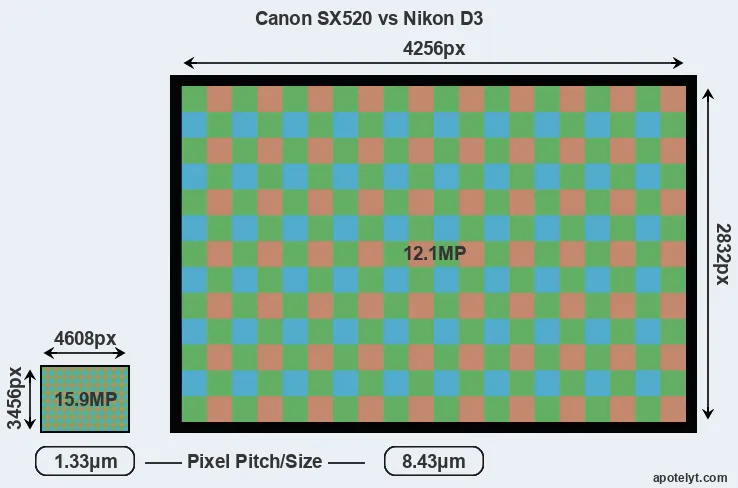 | Sensor Specs | Canon SX520 | Nikon D3 |