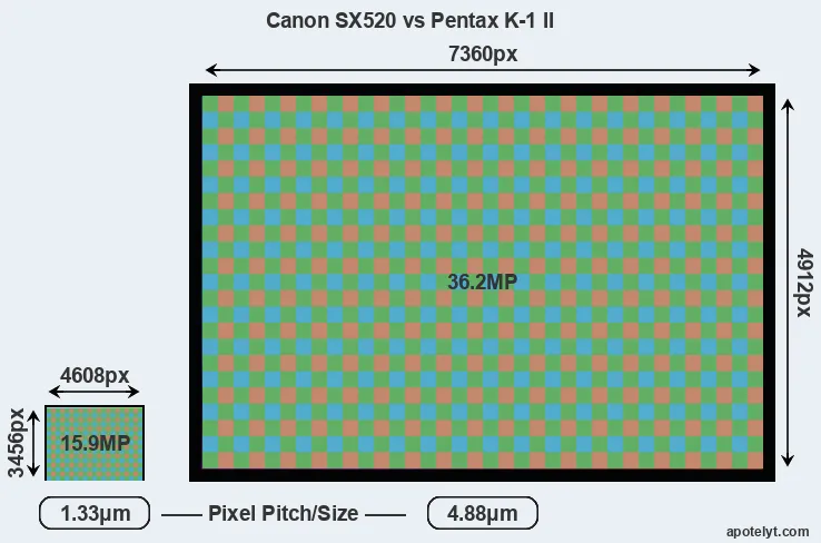 | Sensor Specs | Canon SX520 | Pentax K-1 II |