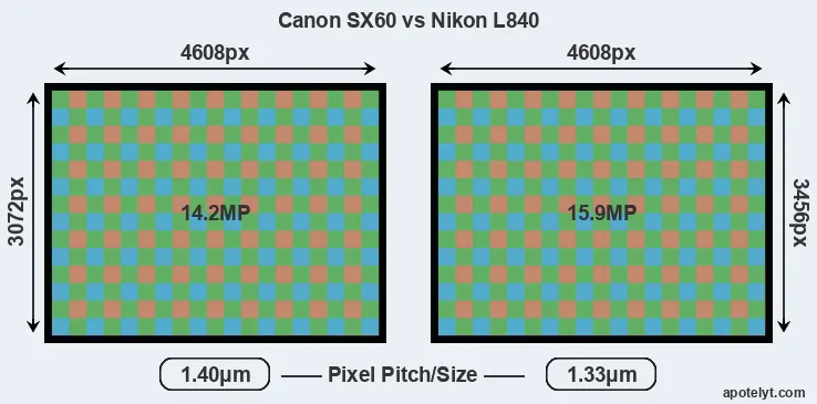 | Sensor Specs | Canon SX60 | Nikon L840 |