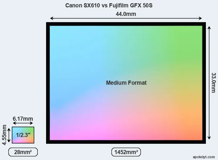 | Sensor Specs | Canon SX610 | Fujifilm GFX 50S |